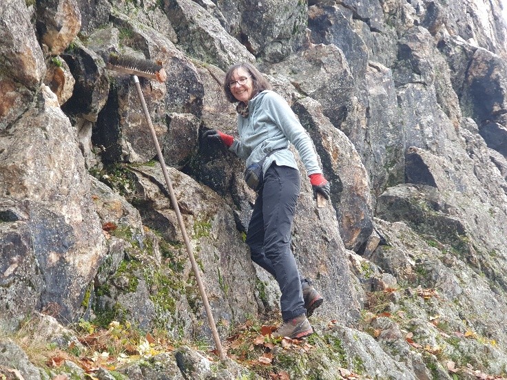 Einige endemische Flechtenarten, gehören mittlerweile zu den gefährdeten Arten. Indem wir die Felsen auch an den Stellen, die wenig beklettert werden von Moos befreien, haben die Flechten bessere Bedingungen.